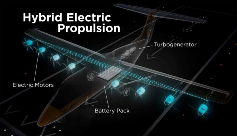 The nine-passenger hybrid-electric EL9 uses a distributed electric propulsion system to take advantage of an aerodynamic concept called blown lift. This effect enables take-offs and landings in distances of less than 150ft (45m).