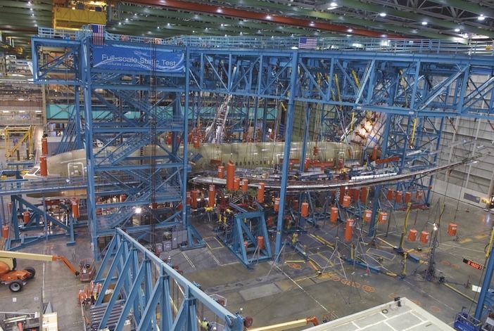 n May 2009, inside a test hall at Boeing’s facility in Everett, Washington, USA, engineers began bending the composite wings of static test airframe ZY997 upward. It was supposed to be routine – a limit load test applying forces equivalent to the most extreme loads the aircraft would ever experience in service.