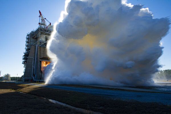 Hot fire vibration testing of the RS25 engine – the propulsion source for NASA’s SLS – at the Fred Haise Test Stand. (Stennis Space Center, MS, USA)