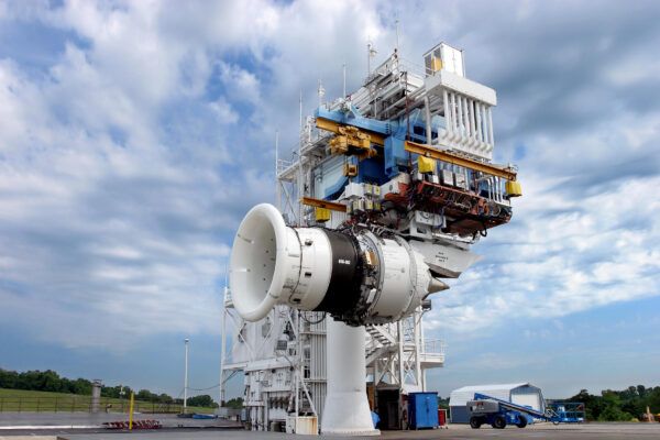 Ground testing of the GE9x commercial aircraft engine, the largest and most powerful ever designed, for Boeing’s 777x aircraft class. (GE Peebles Test Facility, OH, USA)